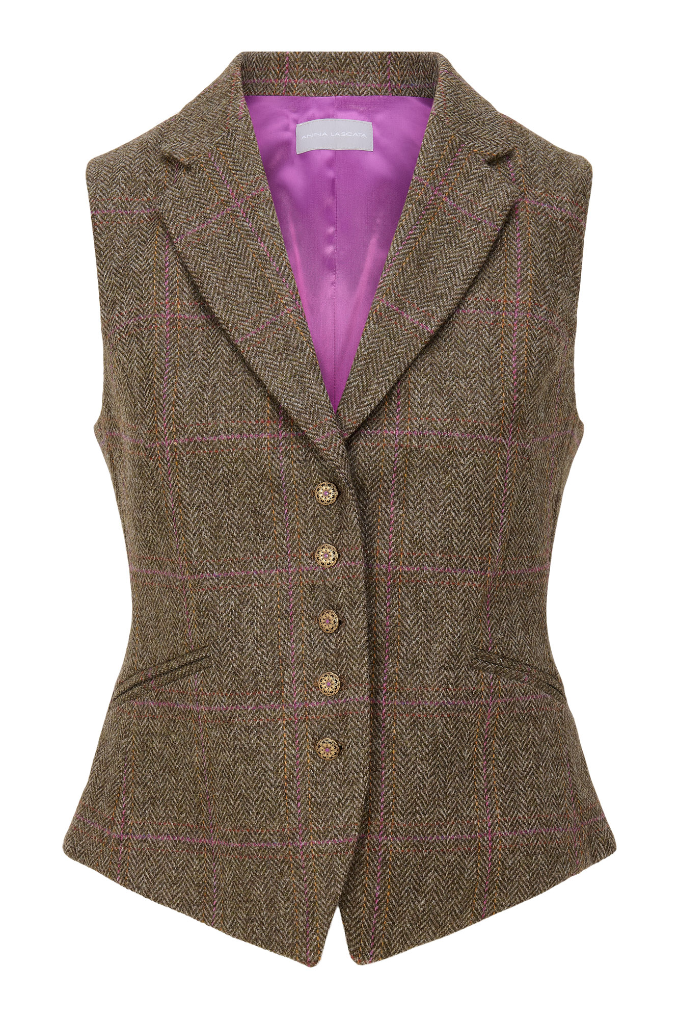 CLASSIC, SPORTIF WAISTCOAT WITH LAPEL . THE LIVIA HAS BEAUTIFUL SIGNATURE BUTTONS , VIBRANT PINK LINING AND A TAILORED FIT THAT ENSURES AN ELEGANT APPEARANCE.