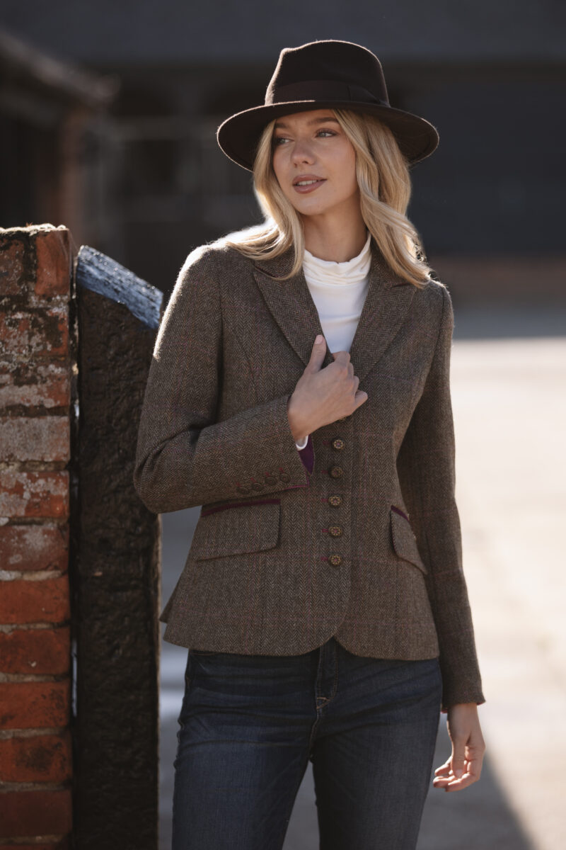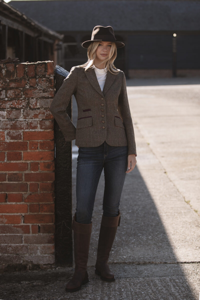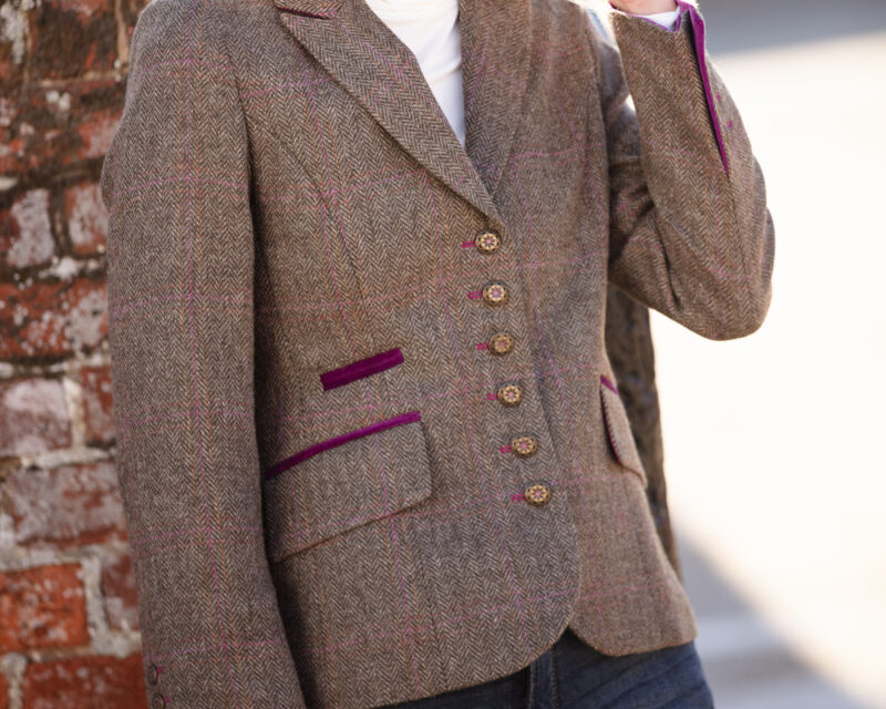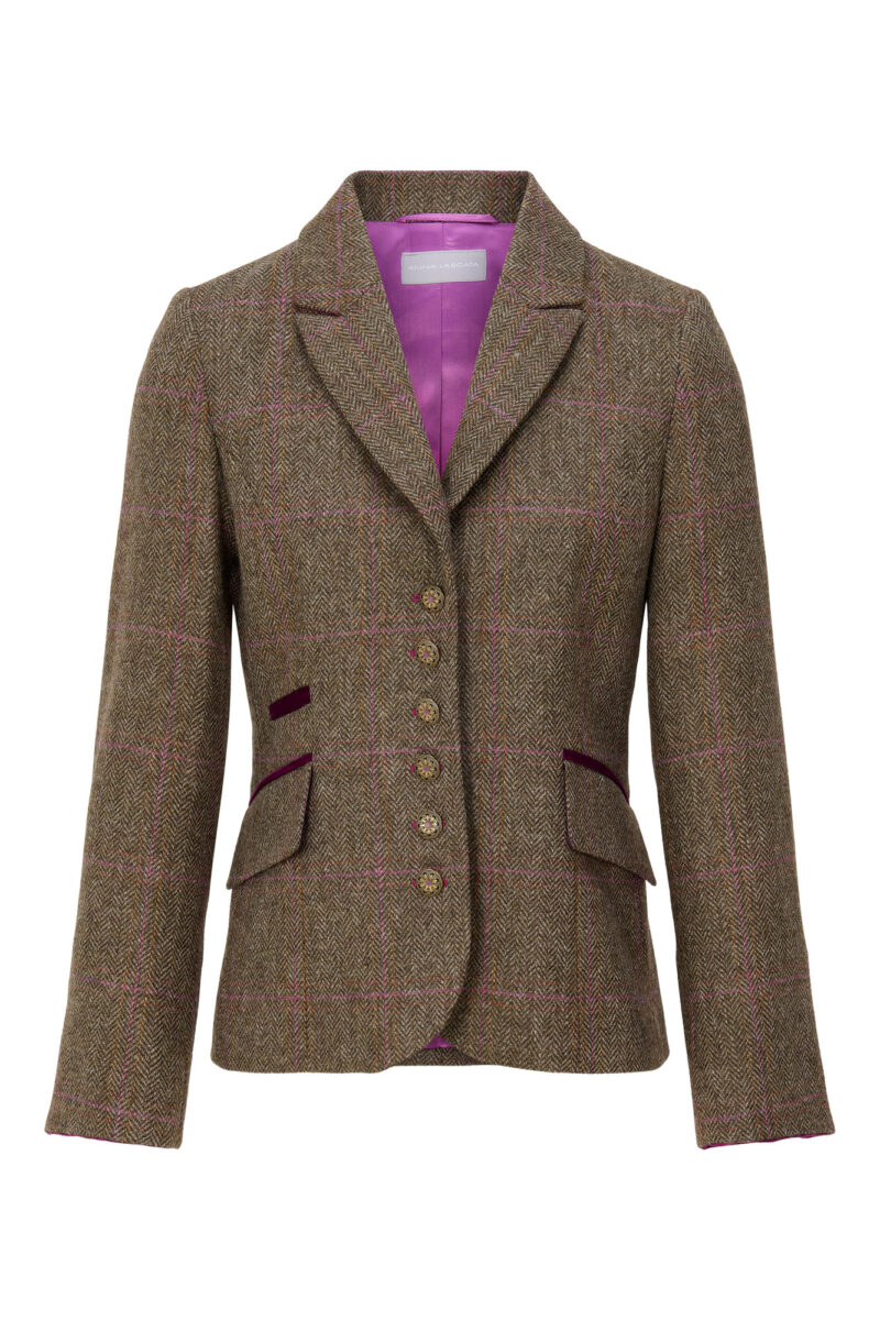 SPORTIF AND ELEGANT HACKING JACKET WITH A PERFECT BALANCE BETWEEN MODERN FIT, CLASSIC DESIGN AND PURE MATERIALS. THE LIVIA HAS BEAUTIFUL SIGNATURE BUTTONS , VELVET DETAILS, VIBRANT PINK LINING AND A TAILORED FIT THAT ENSURES AN ELEGANT APPEARANCE.