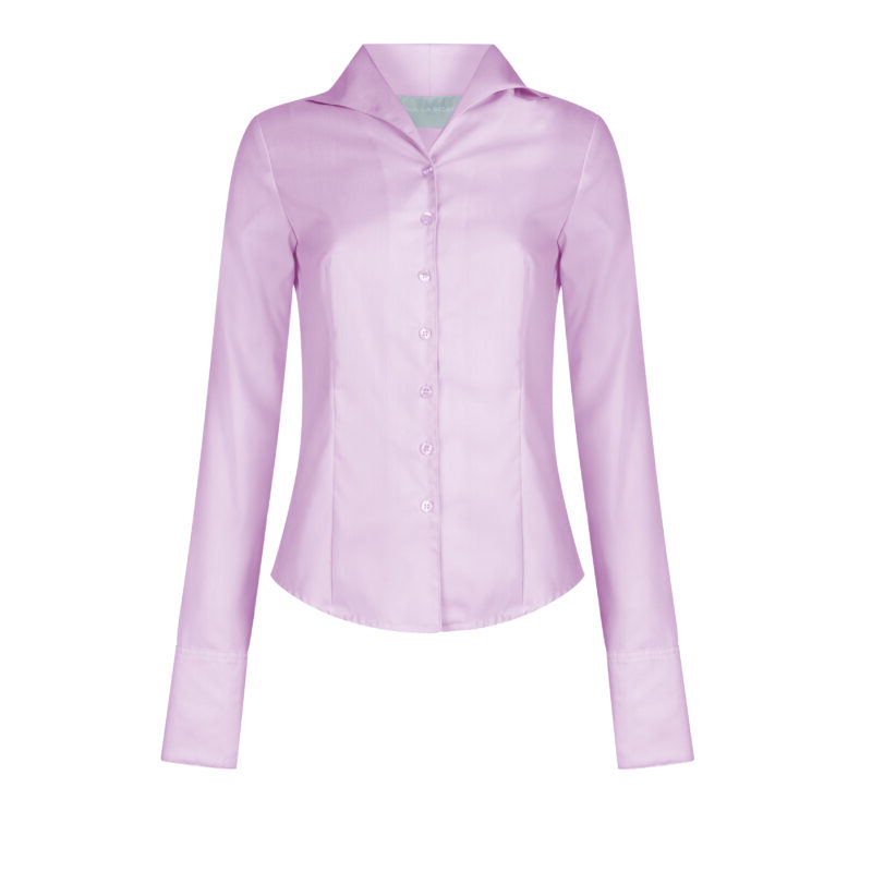 A TAILORED BLOUSE IN A SUBTILE COTTON HERRINGBONE WITH WING COLLAR AND CONVERTIBLE CUFFS . A TRUE WARDROBE CLASSIC, EASY TO WEAR ON A PAIR OF JEANS OR UNDER LAPEL COAT OR JACKET.